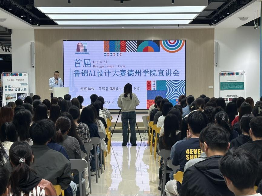 9月19日,由山东省工业和信息化厅、山东省总工会、山东省教育厅、山东广播电视台主办、山东纺织工程学会承办的首届鲁锦AI设计大赛宣讲活动在德州学院大学生赋能中心顺利举行。本次活动旨在推动人工智能技术与传统鲁锦纺织工艺深度融合,激发青年学子的创新设计能力,为非遗文化的现代转化注入新动力。活动吸引了飘花理论无限众多本科生积极参与,现场气氛热烈。
