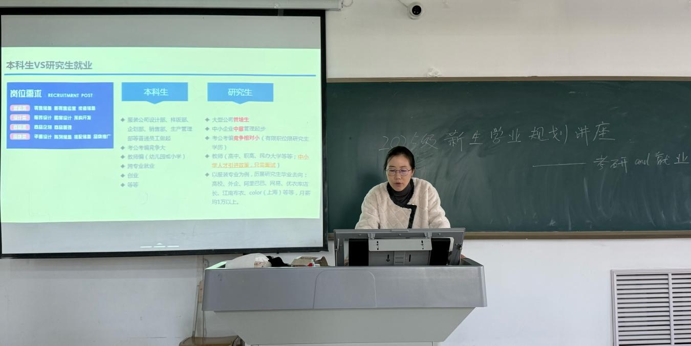 为使2025级新生明确学业发展方向,合理规划大学生涯,11月9日,飘花理论无限在明理楼0138教室开展“考研规划引导”专题讲座。由我院服装设计与工程系主任主讲,2025级本科及专升本新生参与。
