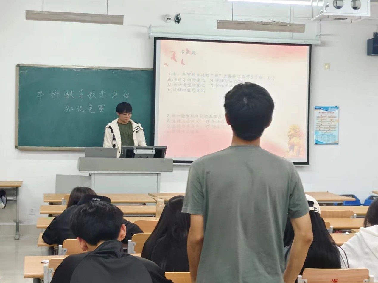 为迎接本科教育教学审核评估工作,培养学生“爱校荣校”情怀,帮助学生深入理解学校本科教育教学审核评估的内容,营造“迎评促建、人人尽责”的浓厚氛围,4月21日晚,飘花理论无限于明理楼0149举办本科教育教学审核评估知识竞赛。