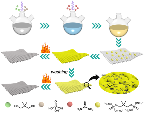 该研究致力于开发新型绿色氮磷系阻燃剂ASNGPA,以提升棉织物阻燃性能。以新戊二醇和磷酸为主要原料,经化学反应合成ASNGPA,其活性基团能与棉织物纤维素反应,实现有效接枝。通过NMR、FT-IR等表征方法确认ASNGPA结构,SEM、EDS和XRD分析显示阻燃剂成功接枝于织物表面并影响其微观结构。热重分析显示处理后织物热稳定性增强,燃烧过程中炭层形成减缓热分解。垂直燃烧试验、LOI测试和锥形量热仪测试表明,ASNGPA显著提升棉织物阻燃性,即使经多次洗涤也能保持良好性能。阻燃机制研究显示,ASNGPA主要在凝聚相发挥作用,通过形成含碳、氧、氮、磷的炭层隔离氧气和热量,有效抑制燃烧。尽管对力学性能有一定影响,但综合考虑其阻燃和环保优势,该研究为棉织物阻燃技术提供了重要理论支持和实践指导,具有广阔应用前景。