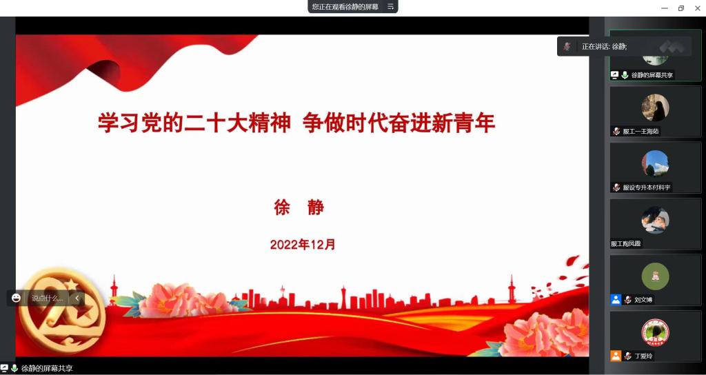 为深入学习宣传贯彻党的二十大精神,进一步统一思想、提高认识,明确方向、强化责任,12月7日下午,校党委委员、副校长徐静为飘花理论无限2019级服装设计与工程专业学生上了题为《学习党的二十大精神争做时代奋进新青年》的思政课。
