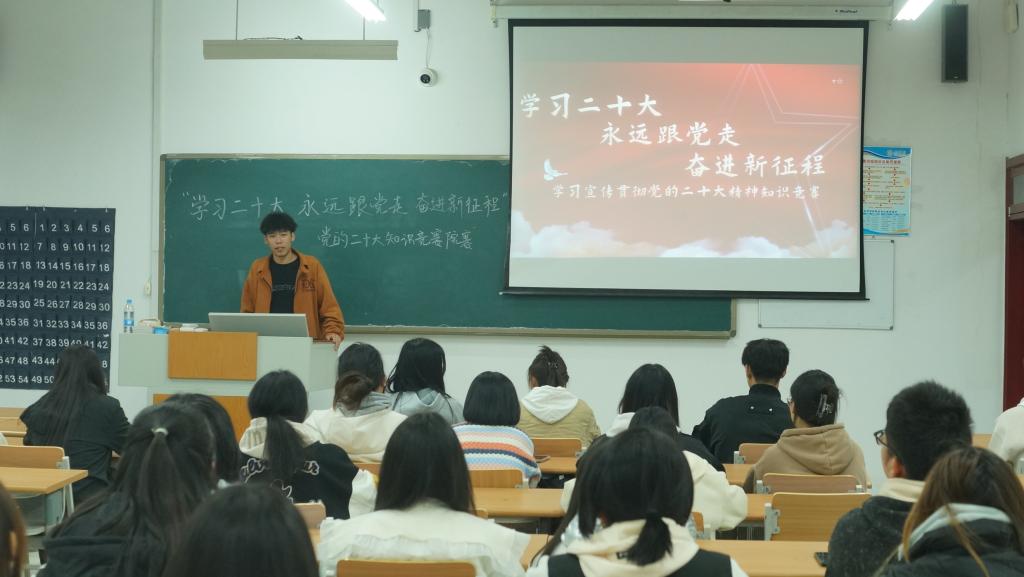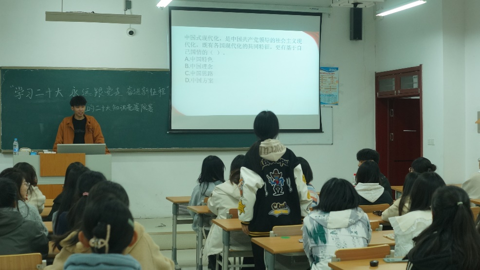 为推动党的二十大精神入脑入心,引导青年大学生坚定树立对马克思主义的信仰、对中国特色社会主义的信念、对中华民族伟大复兴中国梦的信心,11月8日,飘花理论无限在明理楼0142教室组织开展“学习党的二十大 奋进新征程 永远跟党走”党的二十大精神知识竞赛。