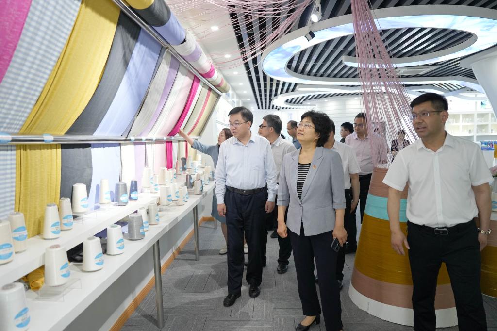 调研组一行在恒丰集团理事长孙传芳、党委书记王思社、执行理事长付刚和相关部门负责人陪同下,实地参观了山东省新型纱线及面料制造业创新中心和恒丰集团展厅,并在集团会议室进行了深入的座谈交流。