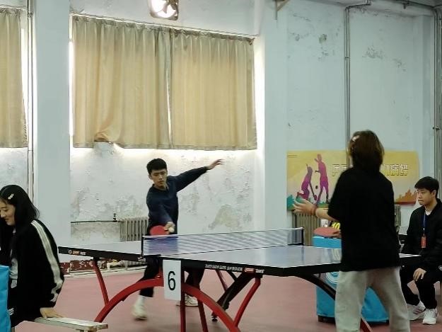 本次比赛,学院选派曲泽彤、孙浩智、刘敬涛等5名乒乓健将参加。比赛中,选手团结一心、顽强拼搏、奋勇争先,凭借扎实的基本功和精湛的球技赢得观众的阵阵欢呼。