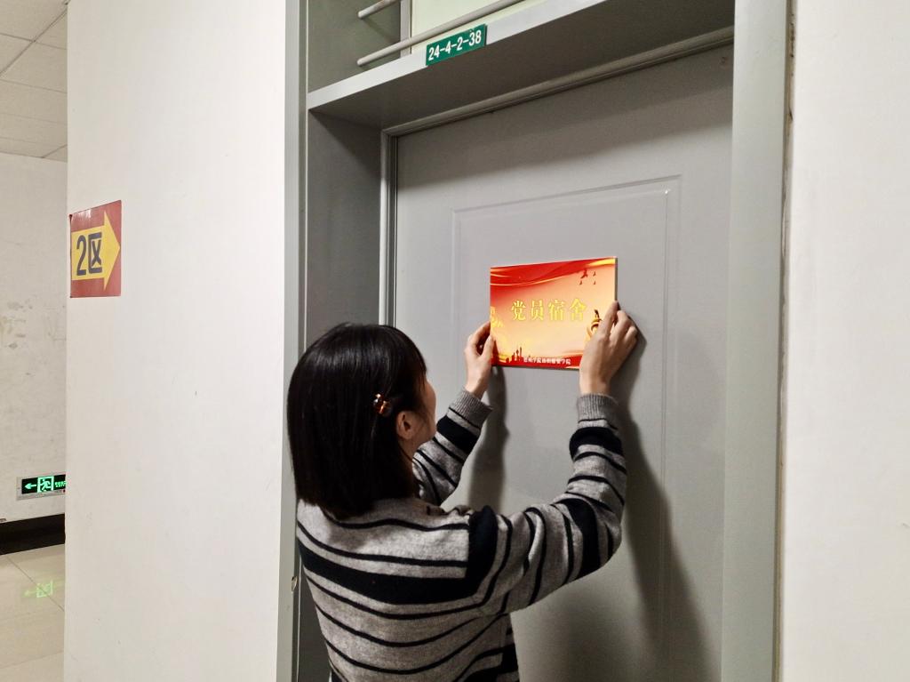 学生党员领取了大红色的“党员宿舍”挂牌,并郑重张贴于宿舍门上。“宿舍是我们重要的生活区,在宿舍亮出党员身份,接受同学监督,提醒我时刻注意自己的党员身份,随时随地严格遵守党的纪律和规范。同时也更好地督促自己要明确责任意识、身份意识,在宿舍内做出表率,发挥党员的先锋模范作用,影响所在楼层,辐射整个学院。”学生党员李亚楠这样说道。
