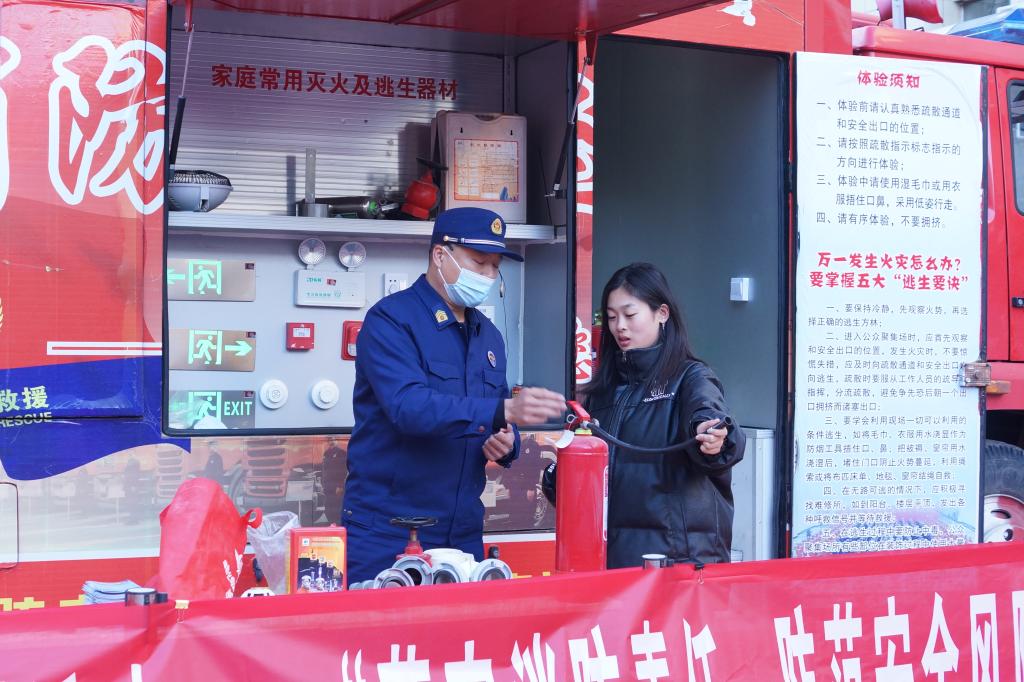 我院辅导员老师事先对消防疏散现场进行了认真的考察、明确了逃生路线,并提前召开主题班会向同学们讲解逃生知识,强调参加逃生演练的必要性和重要性。下午4点,我院参演学生有序进入学生公寓,到达指定地点。随着警报声的响起消防疏散演练正式开始,同学们用湿毛巾、手帕等捂住口鼻有序的撤出公寓。整个应急演练活动规范、有序,同学们都认真对待,高度配合。疏散集结完毕后,德州市消防救援支队工程师张立勇指导我院学生进行了灭火器的实际操作。