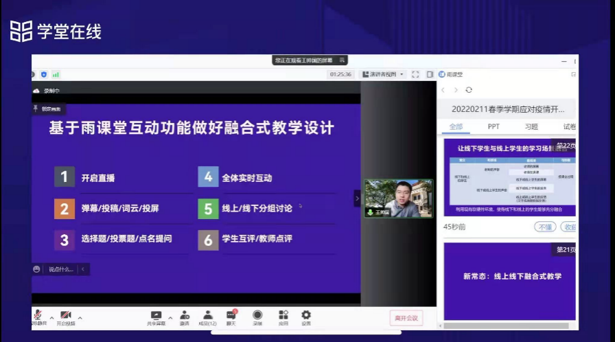 为保障全国高校顺利开展融合式教学,保证分散在各地无法返校的学生正常上课,助力各高校提前制定2022春季学期教学预案,2月11日,我院组织各系主任和骨干教师参加了由教育部在线教育研究中心指导、学堂在线主办的“应对疫情开展融合式教学研讨会”。
