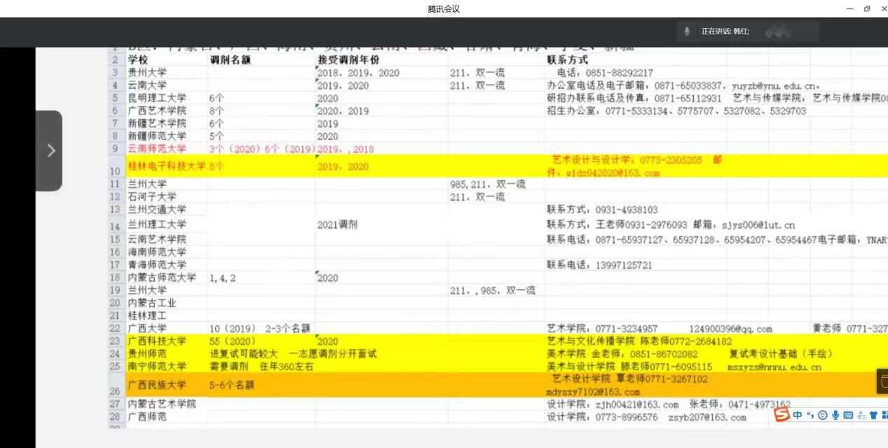 经验交流会按照工程和艺术两大类分别展开,来自天津工业大学纺织工程专业和武汉纺织大学艺术设计专业的两位研一学姐分别作为工科类和艺术类代表,分别分享了自己的复试准备工作、如何联系导师、如何制作个人简历、复试相关流程、面试心态调整等相关知识和经验,并为同学们分析了英语口语、专业课、综合问答等环节的常见问题及应对策略。来自南宁师范大学艺术设计专业的研一学姐,分享了自己在调剂院校上的经验及信息搜集渠道,为同学们分析了调剂过程中的注意事项,提醒大家注意关键的时间节点,把握好时机,全力以赴。经验分享过后,同学们就复试及调剂遇到的各种问题踊跃提问,学长学姐们均一一给予解答。