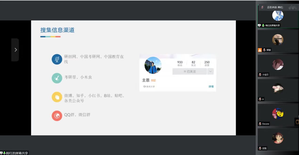 随着2022年考研国家线的公布,各高校考研复试及调剂工作陆续展开。为进一步推进我院考研工作,提高我院考研学子复试及调剂技巧,我院分别于3月11日晚和13日晚,邀请21届考研优秀毕业生开展三场线上复试及调剂经验分享交流会。