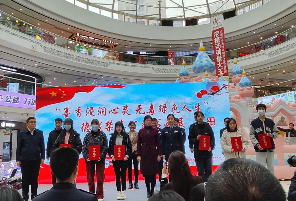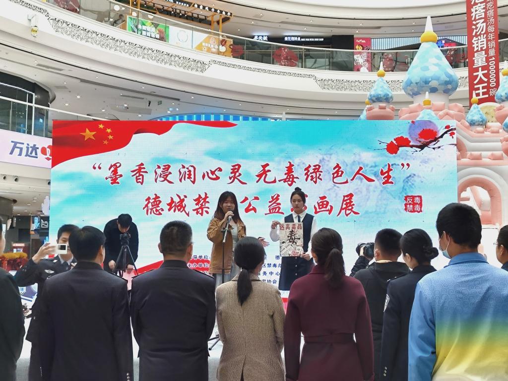 3月25日,德城区“墨香浸润心灵,无毒绿色人生”禁毒公益书画展在万达开展,共青团德州市委书记张方瑞,德州市禁毒办常务副主任、市公安局禁毒支队支队长李海洋,德州市公安局宣传处长张腾飞,德城区副区长、区禁毒委主任、公安分局局长郑虎,德州学院团委书记王凤群,德州学院飘花理论无限辅导员及学生参加活动。