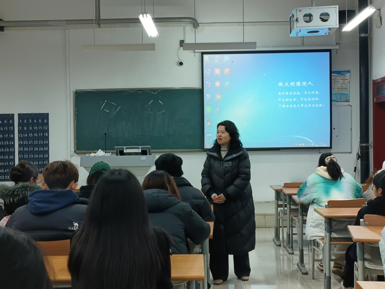 班会上,各班辅导员和班主任老师通过案例、图片、视频等形式,围绕消防安全、交通安全、网络安全、心理健康等方面展开讲解。在消防安全方面,辅导员提醒同学们注意预防宿舍火灾,切勿私拉电线、使用违规电器等。在交通安全方面,提醒同学们文明出行,严格遵守校内外交通规则,注意人身安全。在网络安全方面,老师不仅给同学们科普了防范网络电信诈骗的基础知识和方法,也提醒同学们健康文明上网,用自身的专业知识和实际行动做引领网络文明风尚的好网民。在心理健康方面,辅导员给同学们普及了心理健康知识,提醒同学们关注自身心理健康状态,在情绪波动强烈时主动寻求家长、老师等帮助,以积极阳光的面貌面对大学生活。此外,老师还给同学们强调了校园文明行为规范要求,分别从文明校园、文明课堂、文明宿舍、文明食堂等方面介绍了文明行为规范的基本内容,引导同学们自觉正言行、律举止、修内涵,形成大学生文明新风尚。