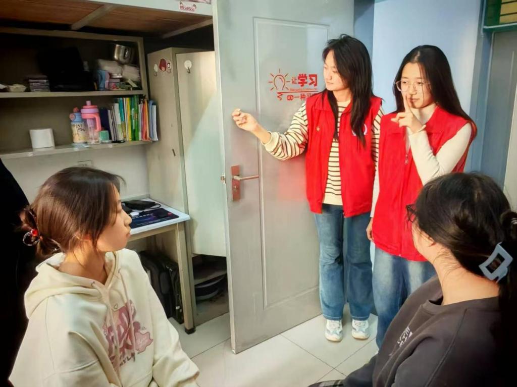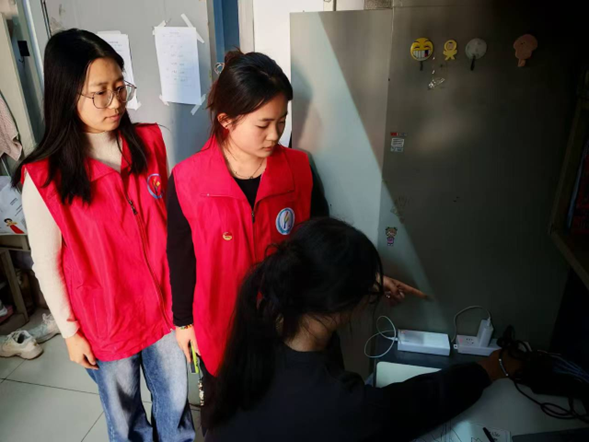 活动期间,负责人重点围绕寝室卫生与安全两大领域开展排查工作。在卫生方面,负责人针对宿舍内各类细节展开全面检查,包括物品规整、被褥叠放、地面清洁、垃圾处理等方面,结合宿舍实际情况,负责人及时采取相应措施并有力地督促同学们整理卫生,保持宿舍环境的整洁有序。在安全问题方面,负责人主要对宿舍内违规使用大功率电器、抽烟喝酒、大声喧哗以及浪费水电等不文明现象进行了严格排查,消除潜在隐患,维护公寓的和谐秩序,并着重进行安全知识宣传,提醒大家提高安全意识,及时发现并消除潜在的安全危险。活动期间,学生干部积极响应,以身作则,不仅严谨细致地协助各项检查工作,还主动向同学们深入讲解文明寝室建设的重要价值与具体标准规范,充分发挥了模范引领与桥梁纽带作用。
