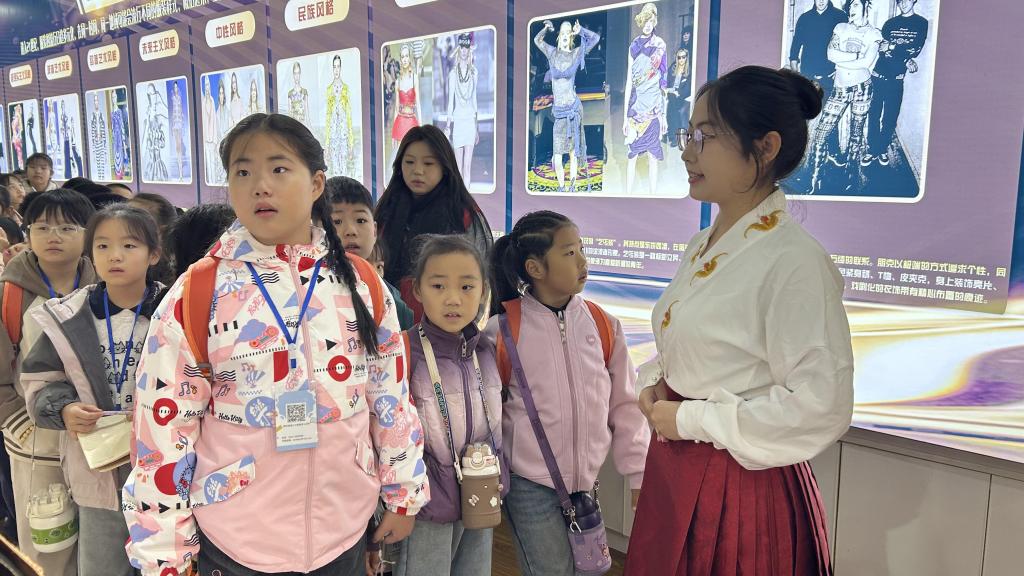 活动中,小记者们在学生讲解员的引导下,依次探访了面料展室、齐鲁服饰展室、染缬艺术展室、服装展室、鲁锦展览馆等特色展厅。参观过程中,学生讲解员耐心讲解了新型绿色环保面料和功能纱线产品的特性。在学生讲解员的介绍下,小记者们了解到灰缬、绞缬、夹缬、蜡缬四大类染缬技术的独特魅力。精美的鲁锦制品和民间收藏艺术品让小记者们驻足欣赏,鲁锦柔软的质感、精致的花纹,让他们真切感受到传统纺织文化的别样魅力,看着那些色彩绚丽、图案别致的作品,小记者们忍不住拿出纸笔记录下有趣的知识,不少小记者还向学生讲解员询问鲁锦的更多知识,现场求知氛围热烈。孩子们在触摸面料、参与体验、聆听讲解的过程中,既开阔了眼界,又感受到了中华纺织非遗的深厚底蕴。