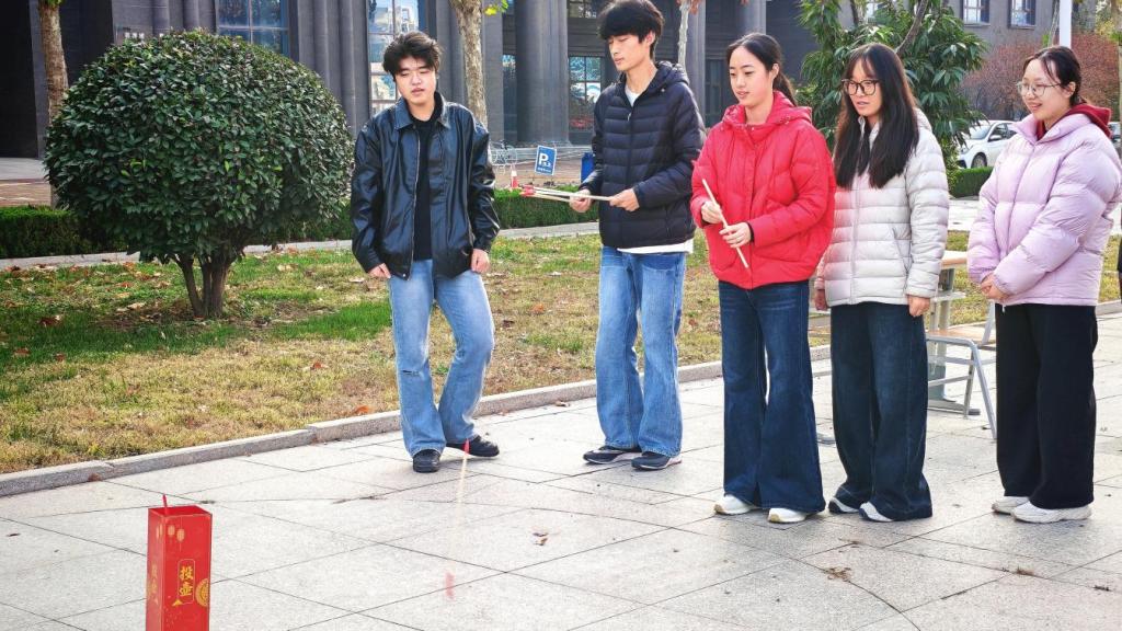 活动现场,各小组围绕抢水瓶、趣味投壶、“纸上传球”三个特色项目依次展开比拼:抢水瓶游戏中,同学们在紧张刺激的节奏与出其不意的指令中迅速反应、敏捷行动,现场气氛紧张激烈却不失和谐欢乐;投壶游戏里,大家沉着耐心、专注坚定,踊跃参与这一传统娱乐项目,在瞄准投掷间感受民俗韵味;“纸上传球”游戏中,各小组的成员们默契配合、互帮共进,将活动气氛推向高潮。在场同学表示,此次趣味闯关活动既让大家在互动竞技中释放压力、增进情谊,更在协作比拼中凝聚了团队共识、强化了集体荣誉感。