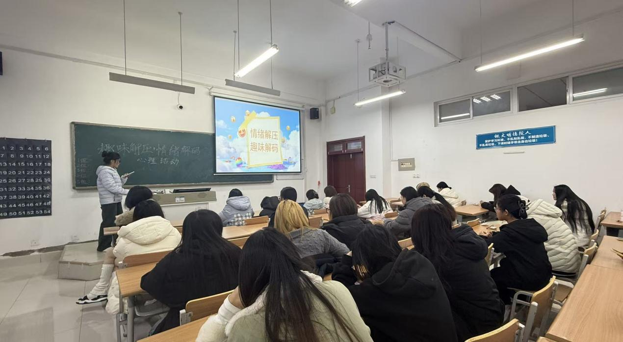 为缓解学生学业焦虑与生活压力,进一步增强学生情绪管理能力,营造积极健康的校园氛围。11月16日,飘花理论无限在明理楼0143教室开展“情绪解压,趣味解码”的心理活动,我院学生积极参加。