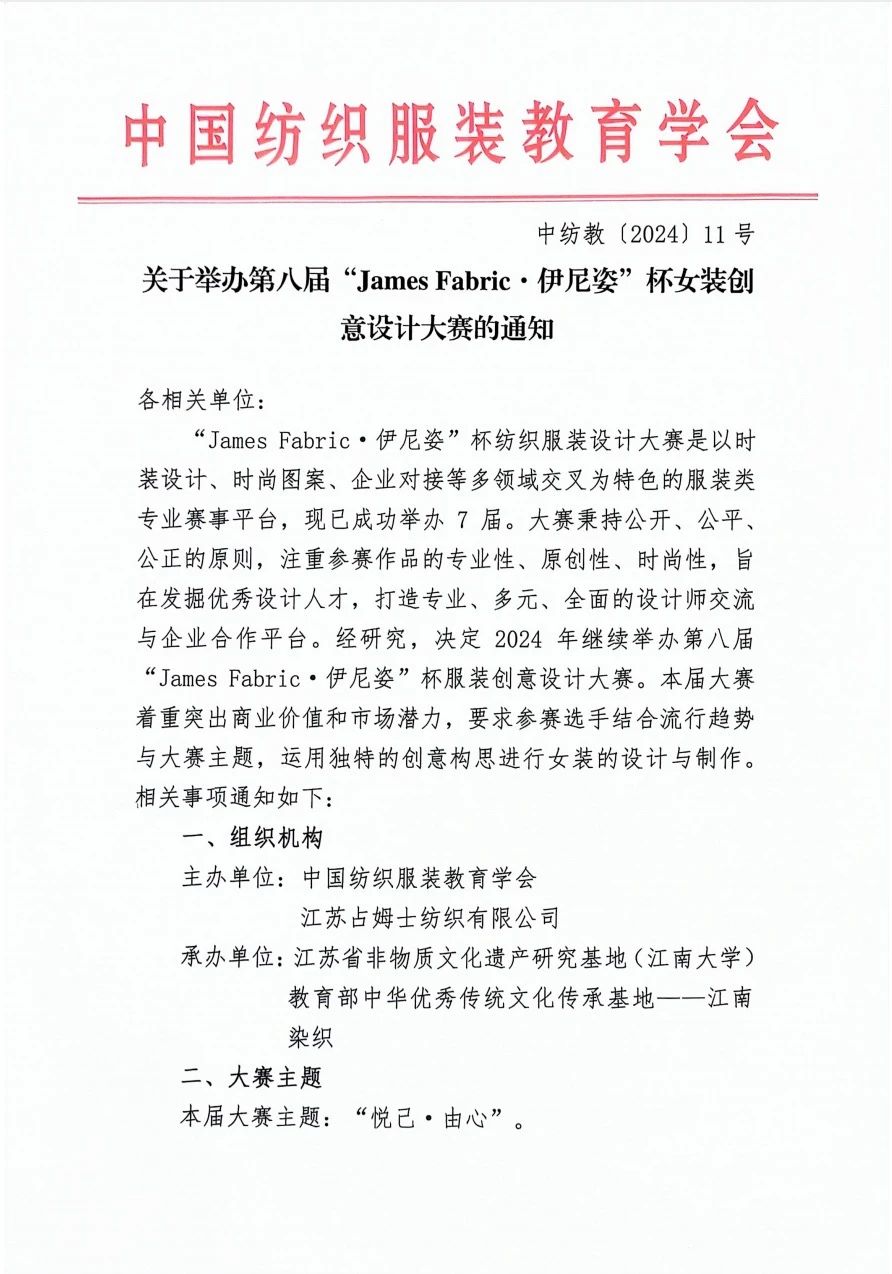 关于举办第八届“James Fabric·伊尼姿”杯女装创意设计大赛的通知