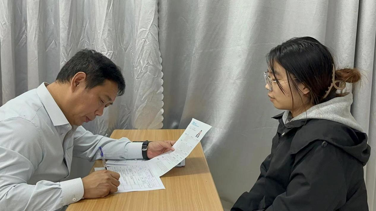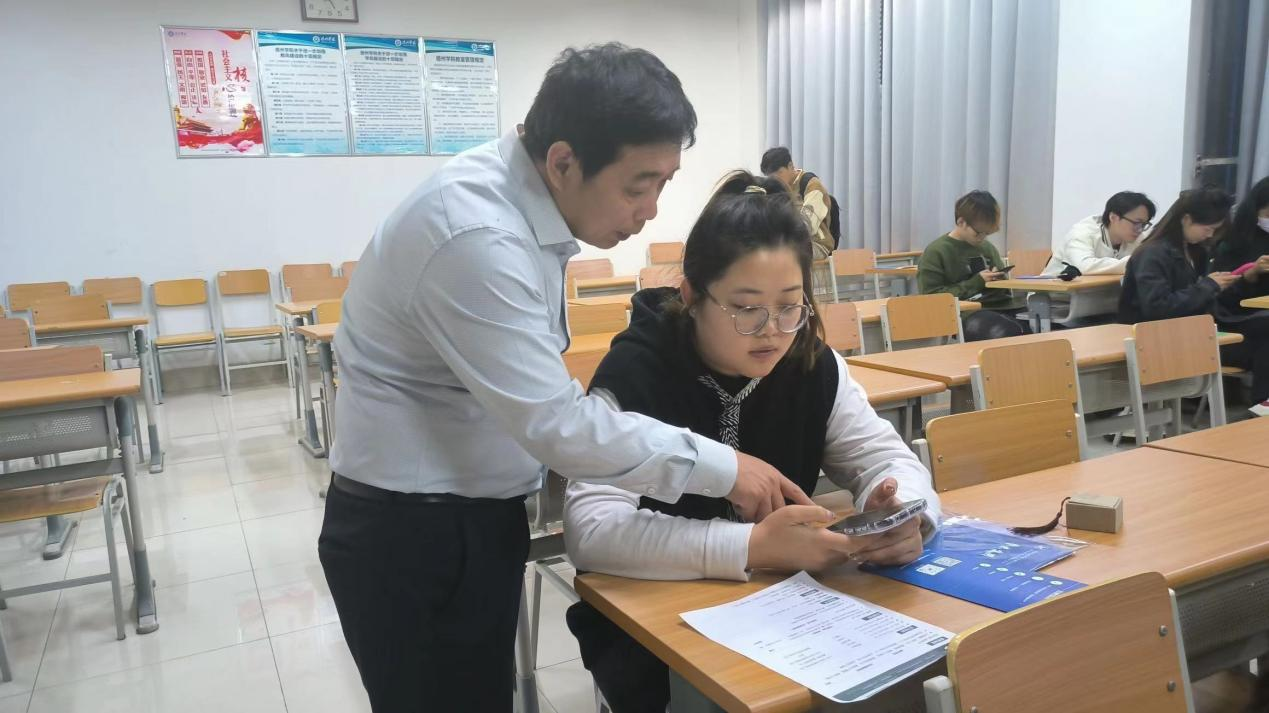 宣讲结束后,有意向应聘企业岗位的同学进入企业招聘相关网页进行网上面试的信息注册,鲁泰集团招聘负责人耐心指导毕业生完成信息注册,并与注册信息的同学进行第一轮面试。