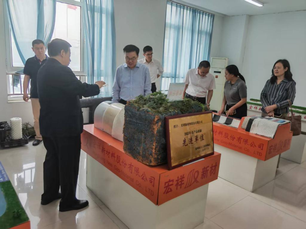 赵长林一行参观了宏祥新材料股份有限公司的生产车间、产品展厅和研发实验室,深入了解企业的生产流程、产品种类及技术研发情况。