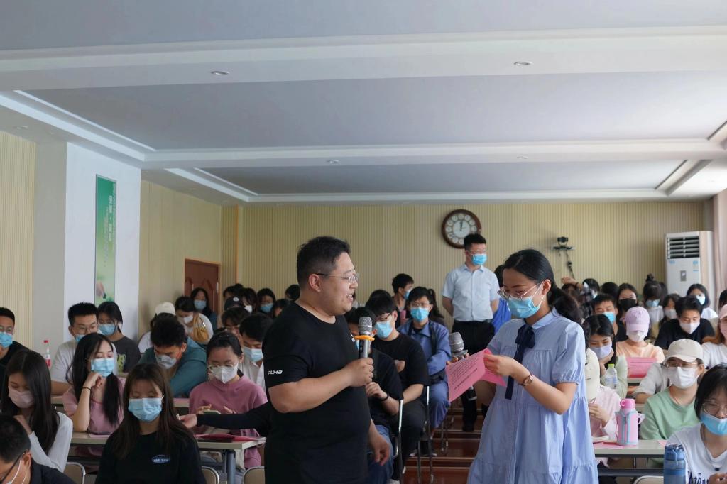 我院优秀校友、宁夏恒丰纺织常务副总经理张建明向同学们分享了个人的成长经历,并与学生交流互动。全国劳动模范、十三届全国人大代表、恒丰集团人力资源部副部长王晓菲分享了从一线员工成长为全国人大代表的19年从业奋斗故事。