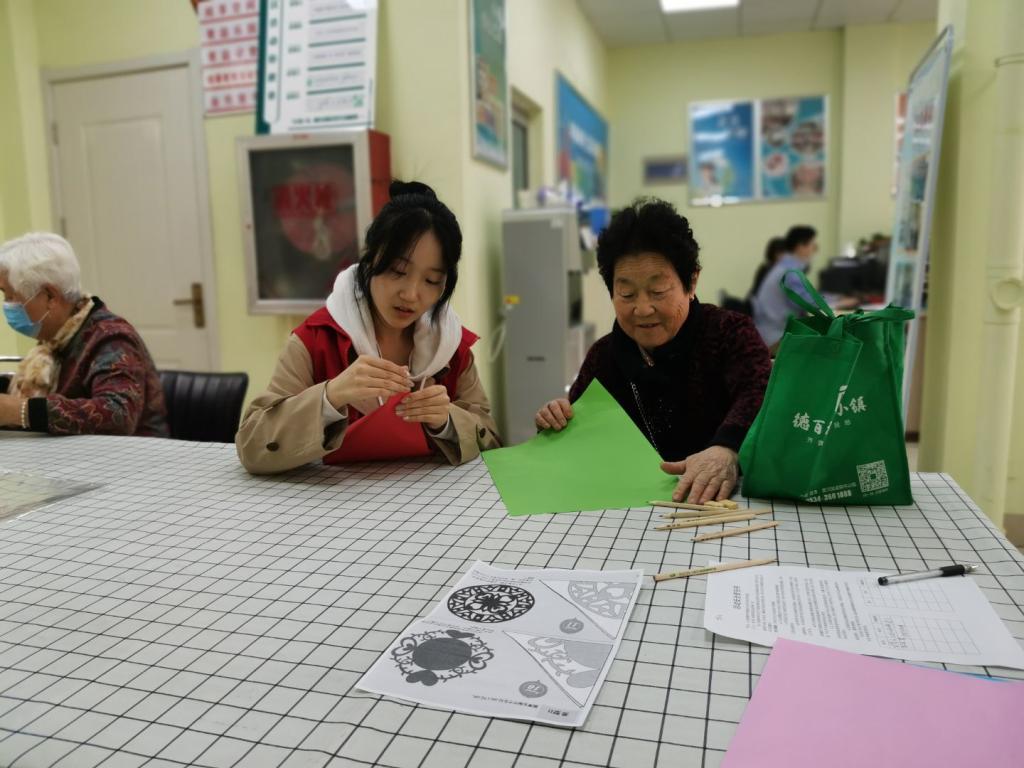 为了重现红色文化,唤醒深藏已久的红色记忆。我院与萧何庄幸福社区合作,于2021年4月13日在萧何庄幸福邻里社区中心举办“红色剪纸,经典传送”活动。通过教老人剪纸,给老人送去关爱的同时,传播红色经典。