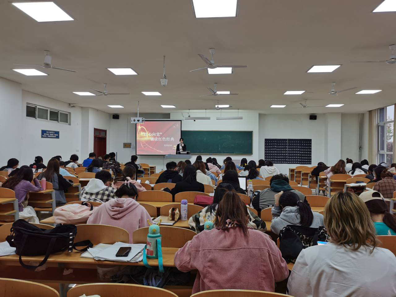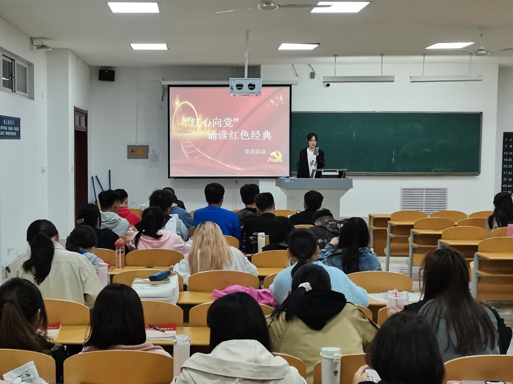 为迎接中国共产党成立100周年,深入开展党史学习教育,激发爱党爱国、建功新时代的使命感和责任感。2021年4月15日晚上18:00,入党积极分子在明理楼0138开展主题为“红心向党,诵读红色经典”的诵读赏析活动。