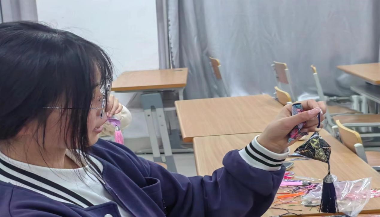 活动开始前,活动负责同学详细介绍了香囊的文化背景和制作方法,讲解了刺绣的基本针法和香囊的香料选择,按照分组依次分发放材料包。制作环节中,同学们充分发挥自己的创意和想象力,有条不紊地按照步骤制作香囊,从穿针引线、填充香料到缝合收尾,最后再系上流苏和挂坠,一个精美别致、小巧玲珑的手工香囊就呈现在眼前。同学们沉浸在香囊的古韵气息中,感受着传统文化的深厚底蕴和传统工艺的魅力,大家纷纷展示自己的作品,交流分享创作心得。