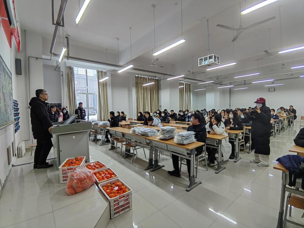 另外,学院老师和同学们还以视频的形式为考研学子加油鼓气,往届考研上岸的学长学姐们通过自身经验分享了考研心得,送上了考研祝福。最后,学院为同学们发放了考研大礼包,有寓意“心想事成”的橙子,还有文具袋及考研所需的各种文具等。暖心的礼品也让在场学子们倍加振奋,大家纷纷表示,一定会全力以赴完成考研战场的最后“一公里”,努力拼搏,以饱满的精神状态迎接考试,以优异的成绩来回报学院的关怀。