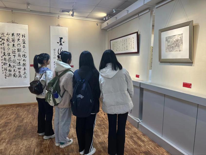 本次展览展出了涵盖书法、绘画等多件集思想性、艺术性、观赏性于一体的作品。其中书法作品主题突出、精神荟萃,绘画作品物象逼真、意境深远,作品内容展现了国家富强、民族振兴的时代风貌,讴歌了祖国的大好河山,展现出当代大学生昂扬奋进的姿态和朝气蓬勃的精神风貌。参观过程中,同学们一边欣赏,一边交流心得,不仅对作品的技法和内涵有了更深入的理解,也领略了传统书法的魅力。同学们纷纷表示,本次展览形式直观、内涵丰富,从一幅幅书画中受到了艺术熏陶、悟到了文化力量,今后将以更加饱满的热情、昂扬的斗志投入到学习生活中。