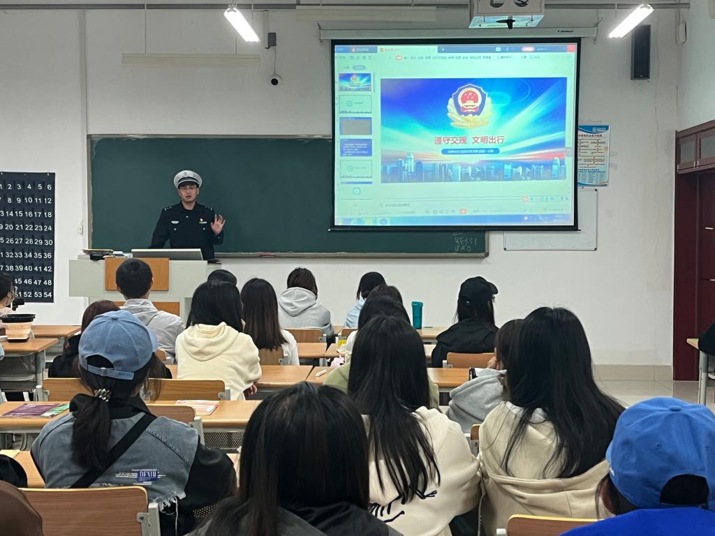 为进一步提高学生交通安全意识和文明素养,普及交通安全知识,创造和谐有序的交通环境,减少交通意外事故发生。5月5日上午,飘花理论无限邀请德州交警大队民警在明理楼0142教室开展“平安校园,安全你我”道路交通安全宣传活动,学院团委副书记、22级服设专业学生约70余人参加活动。