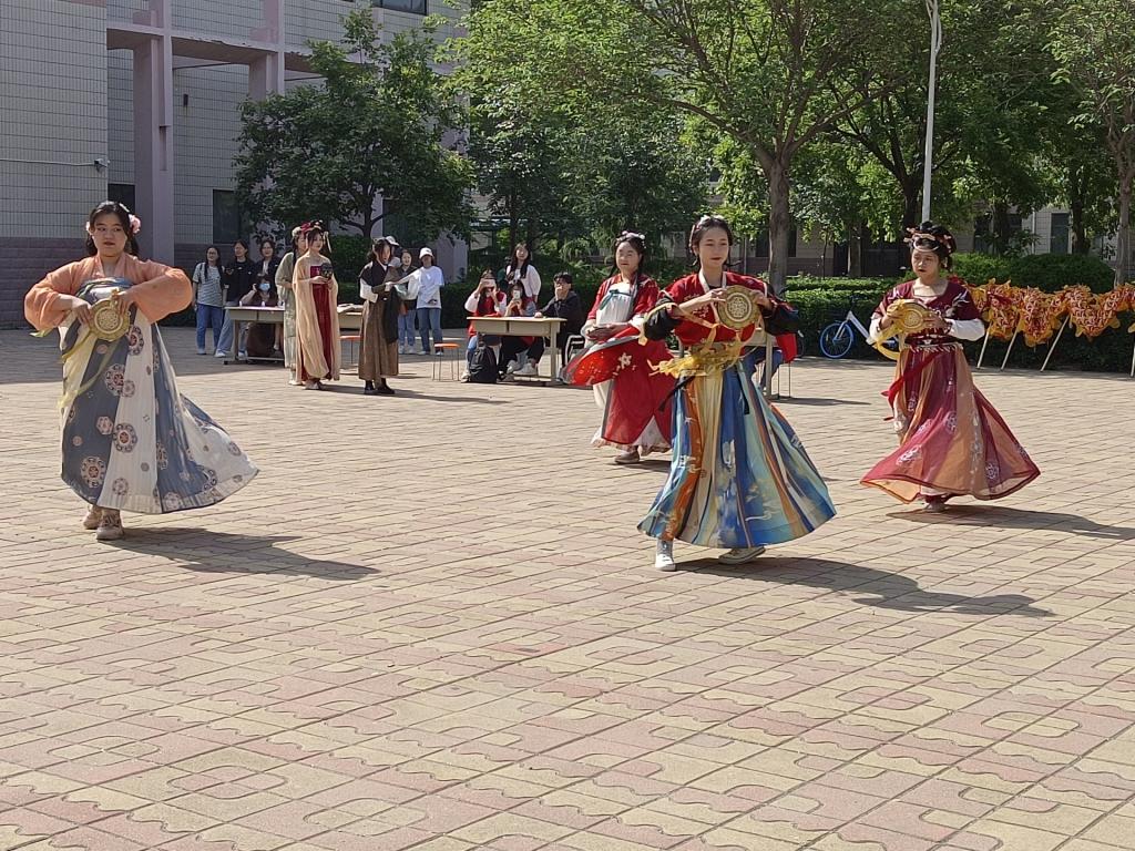 活动中,飘花理论无限e漫DIY手工社团成员向观众讲解了扎染和剪纸的相关知识、基本技法,并现场演示剪纸的全过程,一张张彩纸在他们的手里变得生动活泼,寥寥数剪,就可以剪出栩栩如生的图案,这种神奇的变幻一下子提起了观众兴趣。子衿汉服社则以古典歌舞和走秀的形式向观众展示了汉服的风韵,同学们衣着汉服起舞,衣袂翻飞,裙角飞扬,吸引了许多观众频频驻足观赏。现场活动如火如荼地进行着,整个校园充满着青春的活力,沉浸在热烈的氛围中。