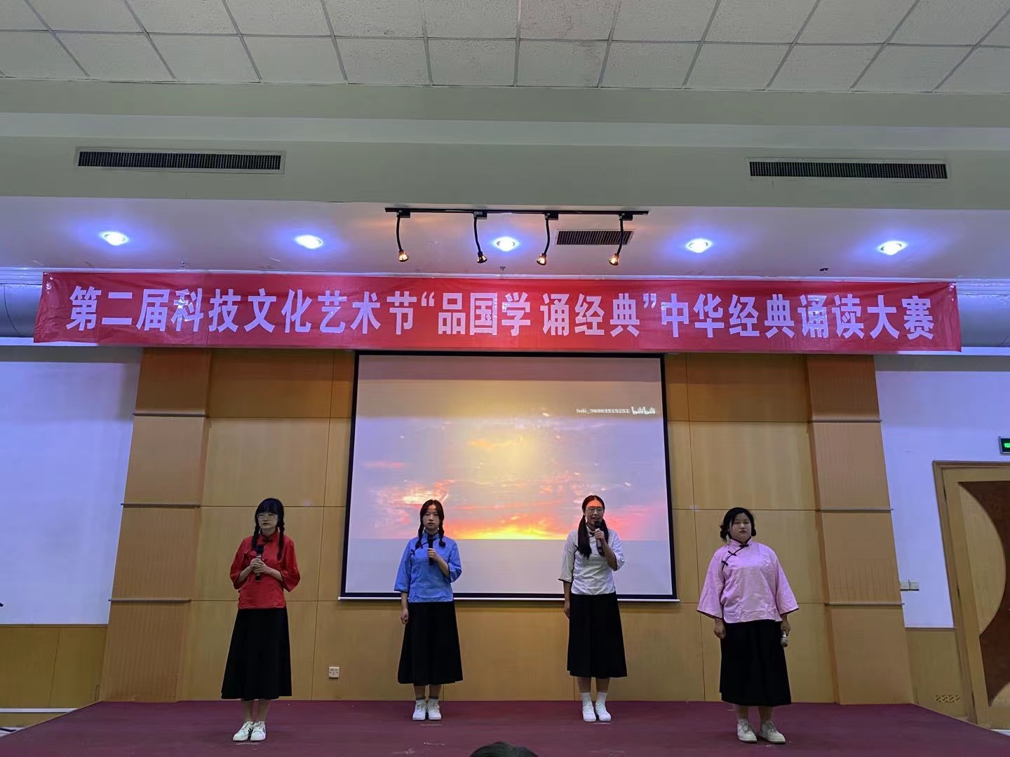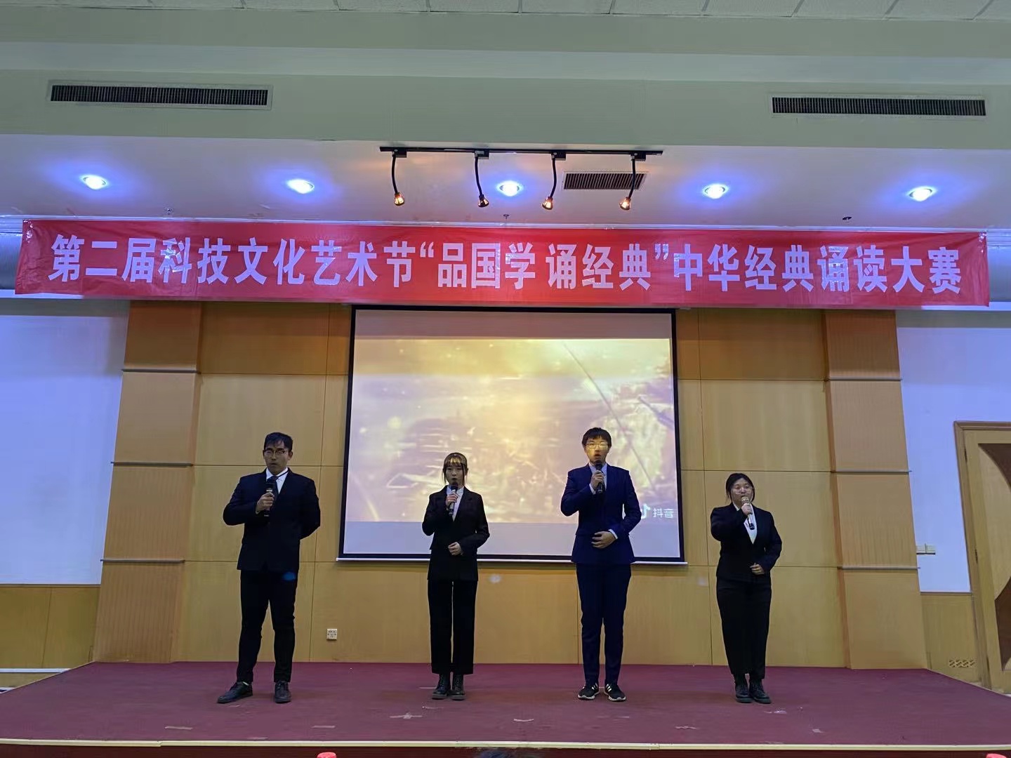 11月27日,由校团委主办,我院、医药与护理学院承办的第二届科技文化艺术节“品国学 诵经典”中华经典诵读比赛在厚德楼四楼报告厅举办。