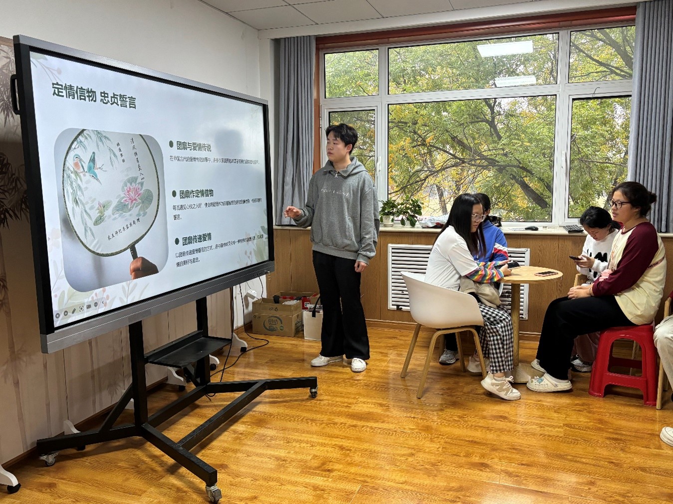 活动伊始,主持人向同学们详细介绍了团扇的历史背景、文化内涵和艺术特点,帮助同学们了解团扇文化的“前世今生”,活动中,主持人鼓励大家发挥奇思妙想,用一花、一叶、一妙手创作出兼具观赏性和实用性的团扇作品,传承中华非遗之美。同学们充分发挥自己的创意和想象力,将各种元素巧妙地融合在一起,在素白的扇面上,利用各式各样的花朵和叶子,辅以精美的装饰品,勾勒出心中意境,让原本平淡无奇的扇面开始变得缤纷多彩,创造出了一幅幅充满生命力与故事性的“艺术品”。在制作过程中,同学们近距离地体验到了手工创作的独特魅力和乐趣。