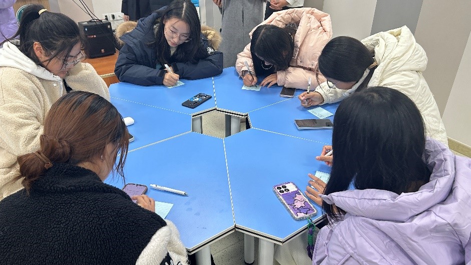 活动伊始,主持人向同学们分发了心愿贴纸,鼓励同学们分享自己的心愿,并将这份心愿粘贴到黑板上,一张张贴纸都承载着同学们的心声和梦想。随后,在负责人的组织下,同学们体验了一场紧张而又刺激的“谁是狼人”游戏,每组都包含狼人、村民、猎人、预言家等多种角色,同学们通过抽签决定各自的身份,随着主持人一声“天黑请闭眼”,一场智慧与谎言的较量在夜幕下悄然展开,同学们纷纷展现出了敏锐的洞察力和严谨的逻辑思维,每一次发言都是对参与者心理、逻辑和语言表达能力的一次考验,展现了同学们的智慧与策略,大家在谎言与真相之间不断徘徊,试图找出隐藏在“平民”当中的“狼人”,这个过程不仅考验了同学们的心理素质,还让大家在游戏中学会了如何与他人合作,共同应对挑战,展现团队配合的默契。