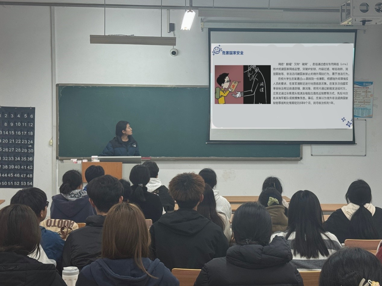 会上,主讲人通过播放一系列典型安全事故视频,深刻阐述了消防安全和网络安全的重要性。在消防安全教育方面,主讲人不仅详细阐释了消防隐患产生的常见诱因、火灾预防的基础策略、初期火灾的扑救技巧、火场逃生的自救要诀,还对常见消防器材的正确使用方法进行讲解,确保每位同学都能熟练掌握消防安全的必备技能与知识要点,真正做到防患于未“燃”。在网络安全教育方面,主讲人通过深入剖析网络陷阱的常见形式,如伪装热点、恶意软件伪装等,结合实际案例,直观地展现了网络安全风险的多样性与隐蔽性。同时,主讲人还着重强调了强化密码设置、谨慎网络支付等注意事项,为同学们提供了全面且实用的网络安全防护指南,助力同学们在虚拟网络世界中筑牢安全防线。