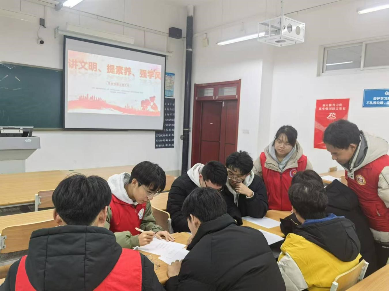 活动伊始,宣讲人通过一系列校园不文明行为的调研数据,以此揭示当前校园文明建设中存在的问题,同时就“我眼中的不文明现象”此主题展开专项调查,搜集校园不礼貌现象与不文明行为,志愿者积极组织学生开展交流讨论,通过案例分析、小组辩论等多种形式,帮助学生深入反思日常行为,选出了学生心目中的“十大不文明现象”,增强了学生的文明意识和自我约束能力。宣讲人还鼓励同学们踊跃提出具有创新性、可行性的建议,共同为打造文明校园而努力。