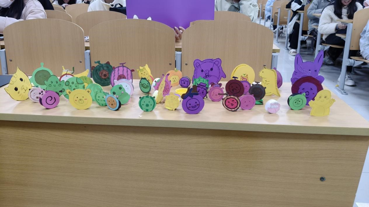 活动现场,负责人展示了“手工不倒翁”的制作过程,同学们分组领取卡纸、瓶盖、橡皮泥等材料,开始动手制作个性不倒翁。同学们充分发挥创意想象,将卡纸剪出各种有趣的图案,用马克笔勾勒出精巧的纹样,巧妙利用瓶盖设计出独特的底座结构,一步步制作出五颜六色、别具匠心的“手工不倒翁”。活动中欢声笑语不断,同学们在手工制作过程中互相分享制作心得,纷纷表示参加这次活动成就感满满。