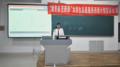 为积极响应国家号召,引导青年学子投身西部建设,4月18日,飘花理论无限在明理楼0138教室开展“致青春 至西部”大学生志愿服务西部计划宣讲会,我院40余名学生参加,会议由我院团委书记主持。
