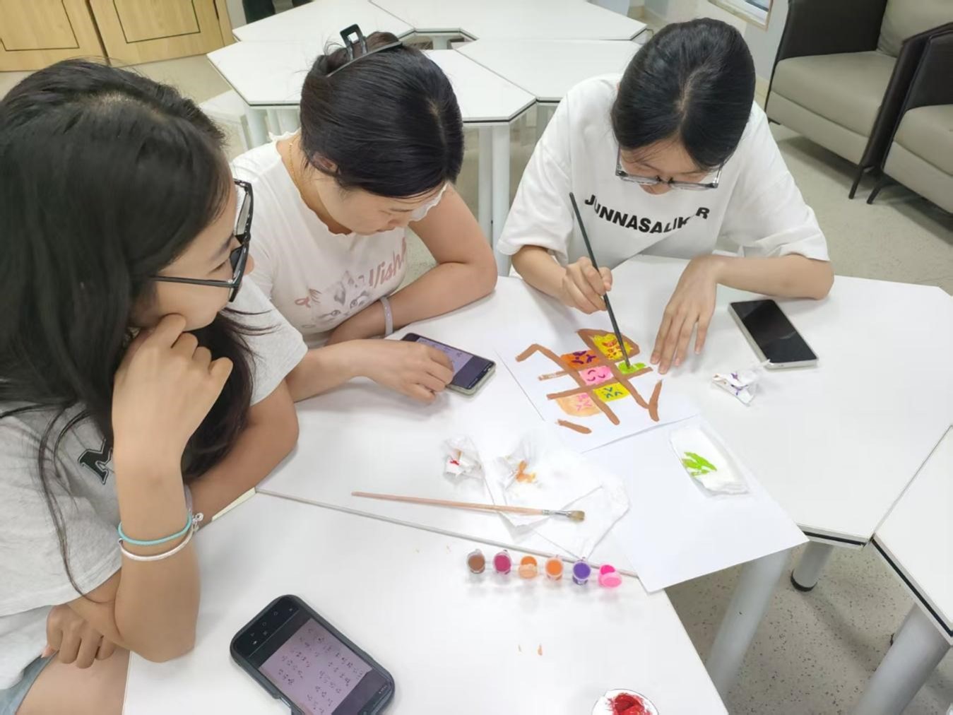 活动现场,负责人向同学们详细讲解了绘画的制作要求和具体步骤,并分发了白纸、颜料和画笔等绘画工具。同学们以小组为单位,围绕“情绪九宫格”这一主题,绘制出了一系列充满创意和想象力的画作。大家巧妙地运用色彩,将快乐、惊讶、兴奋等九种情绪的表达呈现在纸上,有的作品通过抽象而活泼的表情和动作展现情绪变化,有的则借助色彩的细腻过渡揭示内心情感的丰富层次。创作过程中,同学们积极交流、互相启发,既深化了对彼此的了解,也学会了如何在团队协作中发挥个人优势,共同完成富有挑战性的任务。同学们纷纷表示,此次活动不仅舒缓了压力、提升了自信心,更在艺术表达中收获了成就感和团队凝聚力。