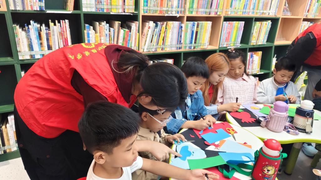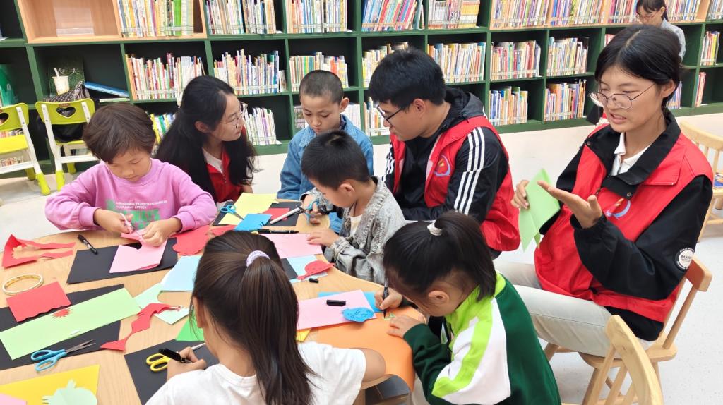 活动伊始,学生志愿者依托精心制作的课件,围绕中华传统民族服饰的历史渊源、文化内涵和艺术特色展开系统讲解。过程中,志愿者们运用通俗语言、典型案例和互动问答,深入浅出地展现各民族服饰的独特魅力,帮助小朋友们建立起对民族服饰文化的基础认知。实践创作环节中,志愿者们以“石榴”为创作主题,开展民族团结主题剪纸贴画制作活动。通过理论讲解、现场示范、一对一指导等方式,为小朋友们系统传授了图案设计、色彩搭配、剪纸技巧等知识技能。小朋友们在剪、贴、画的过程中逐一完成了一幅幅生动的石榴艺术作品,进一步强化了对石榴“多籽抱团”的民族团结意义的理解,现场气氛十分浓厚。