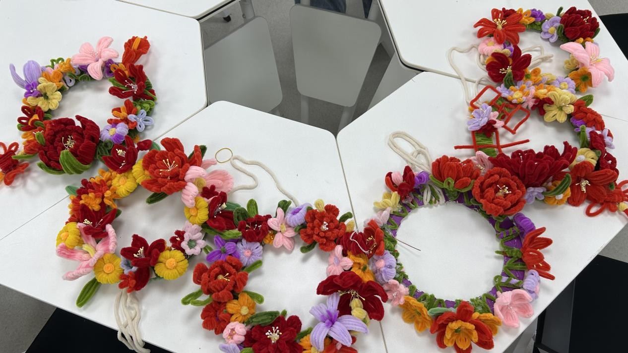 活动伊始,活动负责人详细讲解了扭扭棒花环的制作方法、技巧和注意事项,并将同学们分成若干小组,同学们以小组为单位开始创作。创作过程中,同学们分工协作、互帮互助,有的负责花环框架搭建,有的专注于色彩搭配与装饰点缀。遇到制作难题时,小组成员积极交流讨论,共同探索解决方案,现场气氛热烈而融洽,充分体现出团结互助的良好氛围。经过一番精心制作,一件件独具特色的扭扭棒花环作品纷纷完成。同学们纷纷表示,此次手工活动既充满乐趣又意义非凡,通过参与活动,不仅提升了自己的动手实践能力和创新思维,还在小组协作中加深了与同学们之间的交流和友谊。
