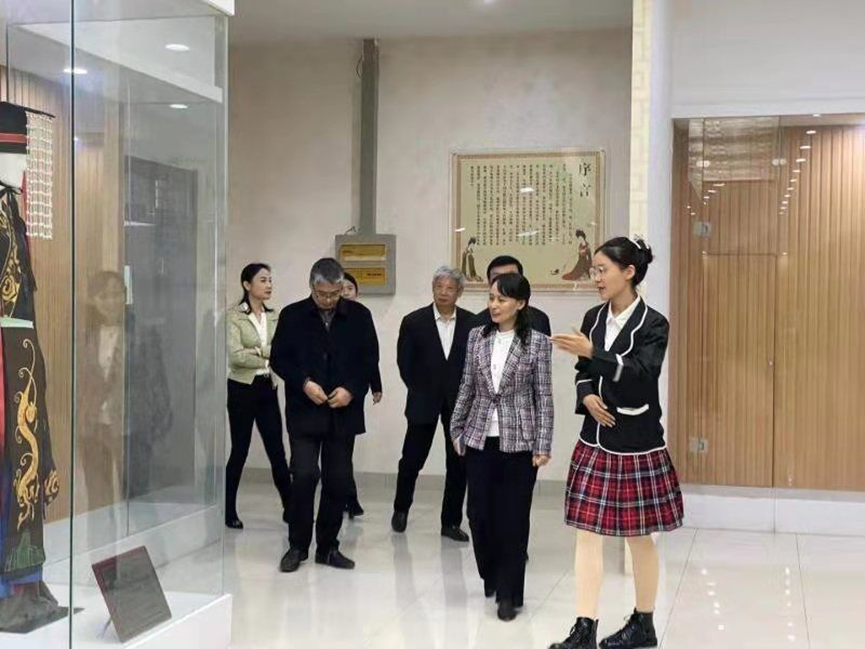 马洪才院长,丁爱玲书记对徐梅一行的到来表示热烈欢迎,讲解介绍了飘花理论无限历史沿革和事业发展的基本情况,讲解员对特色面料馆进行了解说,一同参观了国家面料馆、历代服饰展览馆等特色展厅。