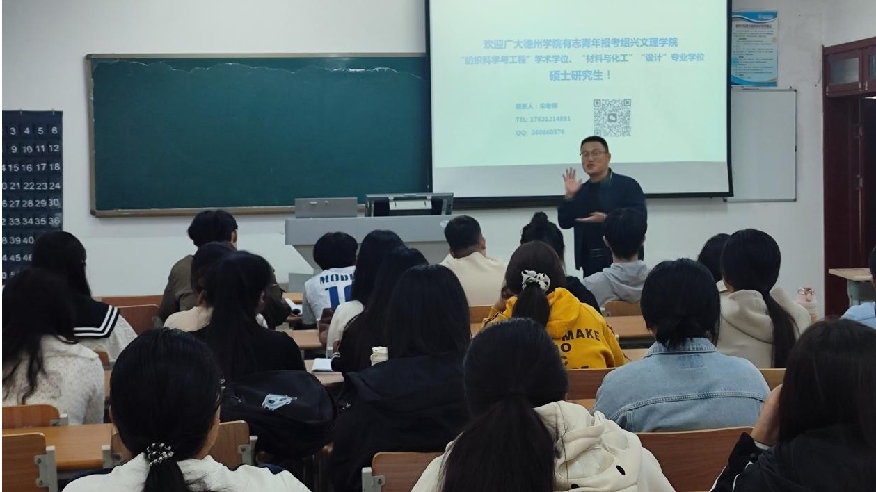 会上,宣讲老师详细介绍了该校的整体概况、学科优势以及研究生培养特色,并重点解读了纺织科学与工程学术学位,以及材料与化工、设计专业学位硕士点的基本情况,通过丰富的图文资料和生动的案例展示,让同学们对该校有了更直观的认识和了解。在考研备考指导环节,宣讲老师从院校选择、复习规划、应试技巧等多个维度进行了专业解析。针对学生专业特点,老师特别强调了专业课程的准备要点,并分享了高效的复习方法。现场同学认真聆听,不时记录重要内容。互动环节中,同学们踊跃提问,就关心的考研政策、专业方向、就业前景等问题与宣讲老师进行了深入交流,老师一一耐心解答,现场气氛浓厚。会后,绍兴文理学院一行参观了国家纺织面料馆—德州学院分馆。