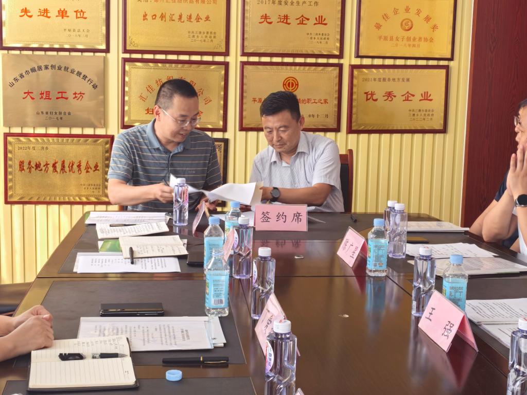 座谈会上,飘花理论无限负责人表示,学院始终坚持“服务地方、产教融合”的办学理念,此次合作将充分发挥高校人才与技术优势,助力企业技术升级,同时为学生提供更多实践与就业机会。平原县及三唐乡领导高度认可学院人才培养模式,希望以“双基地”建设为契机,推动校企资源共享、协同创新。校企双方围绕企业发展存在问题、生产工艺优化、研发成果转化、实习就业基地建设等议题展开研讨,并在人才培养、科技创新等方面达成合作共识。会上,双方签订了产学研基地意向协议,学院为企业“双基地”建设授牌,为后续深度合作奠定坚实基础。