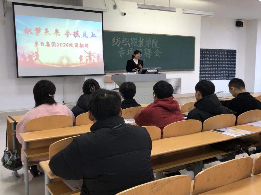 为搭建毕业生与用人单位之间的双向选择平台,促进我院毕业生高质量就业,11月1日,飘花理论无限联合孚日集团、鲁泰集团、迪尚集团、山东德棉新材料科技有限公司在明理楼0138举办专场招聘会,我院2026届毕业生参加。