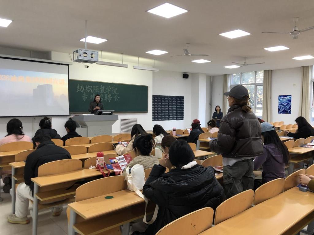 4家用人单位共提供了涵盖工艺研发、生产管理、技术品控及对外贸易等领域的多类优质岗位,人才需求精准对接我院服装设计与工程、服装与服饰设计、纺织工程等专业。会上,各企业通过发放宣传册、播放宣传片、宣讲PPT等方式,向毕业生介绍了公司概况、岗位职责、薪酬福利与发展前景,并针对同学们普遍关注的工作内容、培训体系与晋升机制等问题进行了耐心细致的解答,鼓励毕业生积极投递简历,把握就业机会。会后,同学们根据自身专业与职业规划,踊跃向目标企业提交个人简历,双方就具体岗位的技能要求、职业发展可能性等话题进行了深入交流。